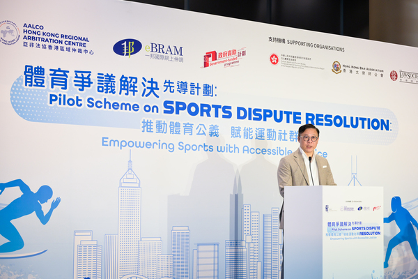 他指,先導計劃通過調解與仲裁處理體育糾紛,促進體育產業在公平的市場中自由競爭發展。律政司會與法律界和體育界舉辦各類推廣、培訓活動,進一步提升公眾對體育爭議解決的認識。他又鼓勵不同專業領域人士積極參與,為香港體育界和爭議解決服務發展作出更多貢獻。