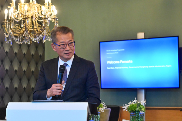 財政司司長陳茂波昨日在瑞士達沃斯出席國務院副總理何立峰在世界經濟論壇年會的特別致辭環節,並與多國官員、國際組織和商界領袖會面交流,介紹香港最新情況和獨特優勢。