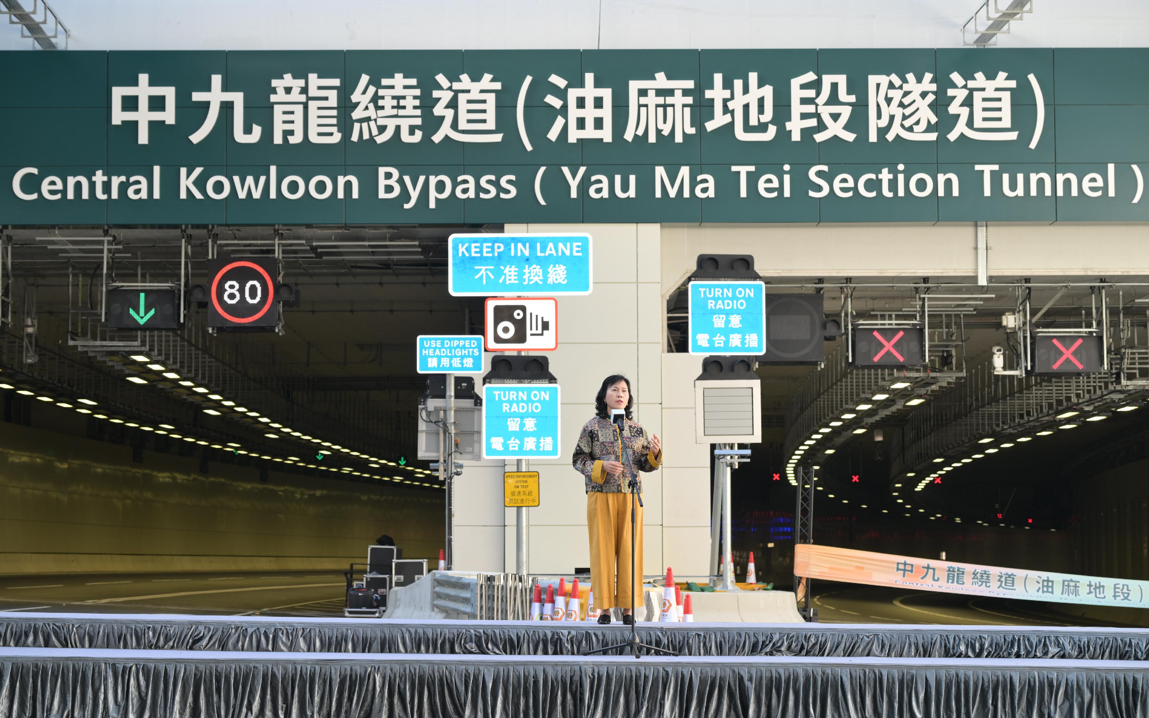 在此要再重申,中九龍繞道(油麻地段)的落成是殊不簡單,當中經歷了無數工程師的汗水和努力。今日能夠在此與各位嘉賓同場親身體驗稍後的通車儀式,我的心情正如剛才司儀所說,是非常感動和激動,亦深感榮幸。今日能夠如期通車,除了經歷了工程的挑戰和克服了當年疫情的挑戰——我們的工程沒有停止——我們能夠如期做到,這種堅毅和不屈不撓的精神,以及工程團隊在設計和興建方面的匠心獨運,這種精神是我們的香港精神。今日沒有很隆重的儀式,沒有嘉賓就座的場合,而是一個與民同樂的機會。近日社會經歷了大火,我們非常痛心,社會現正經歷大火後的復原和復常,但是社會發展和經濟不能停下來,尤其是基建,交通運輸基建要做到基建先行,要創造運力,從而帶動整體社區命脈暢順流轉。